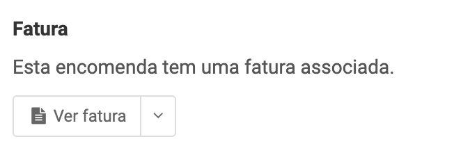 Pode ver qualquer fatura emitida ou anexada nas encomendas da loja online. Consegue fazê-lo a partir da listagem de encomendas, no menu Encomendas, ou diretamente na página de detalhes da encomenda, na secção Faturação, ao clicar em Ver fatura.