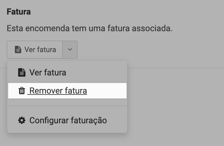 Pode remover faturas associadas a encomendas a qualquer altura. Os passos necessários são os seguintes: