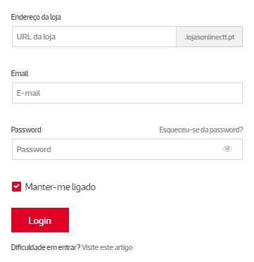 - Aceda à página de login da área de gestão da sua loja: https://aminhaloja.criarlojasonlinectt.pt/login;